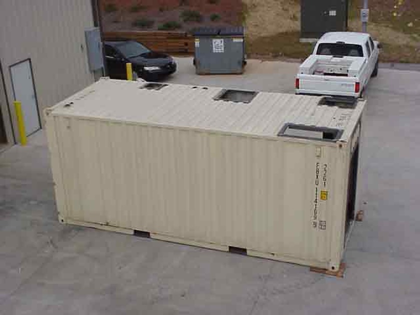 Two 20ft containers converted into a modular testing unit for an engineering company. One of the containers was cut in half horizontally for stacking on-site. The customer installed their equipment and turbo charger testing components on-site as well.