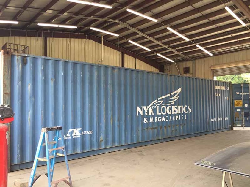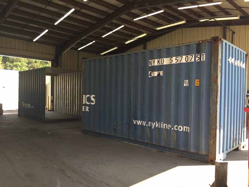 Used 40’L x 8’W x 9’6”H High Cube container cut down to 30’ length
