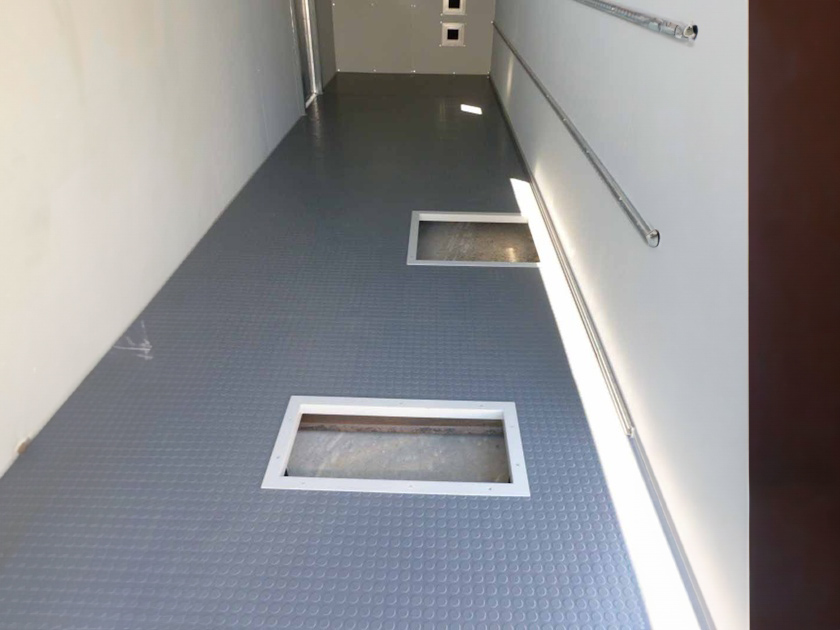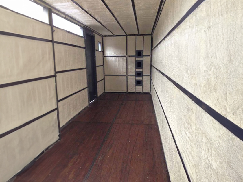 2” x 2” steel framing on walls, average 2” closed cell spray foam and .050” grey polypropylene panel overlay on ½” plywood as wall paneling