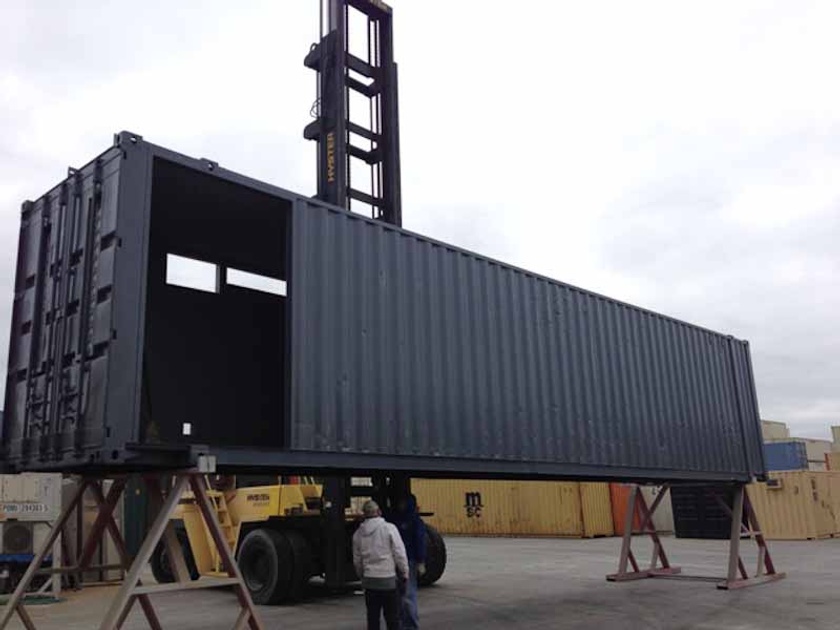 45ft High Cube container converted into an on-site waste recycling/processing unit.