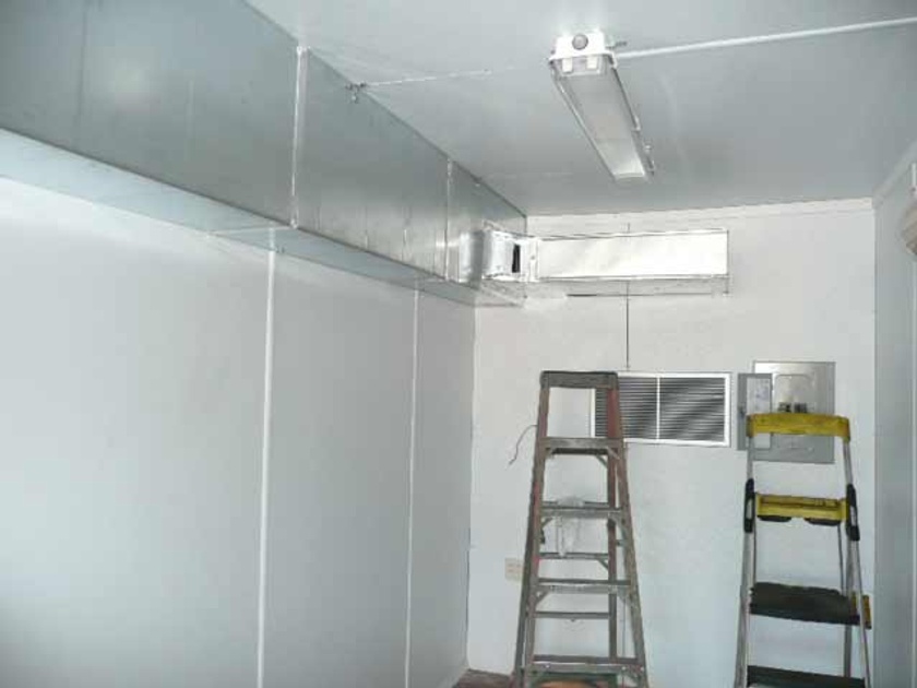 Ventilation air ducts help distribute conditioned air evenly throughout your container, especially in multi-section layouts. These ducts are constructed from durable sheet metal, and they are typically left exposed to maximize ceiling height within the unit.