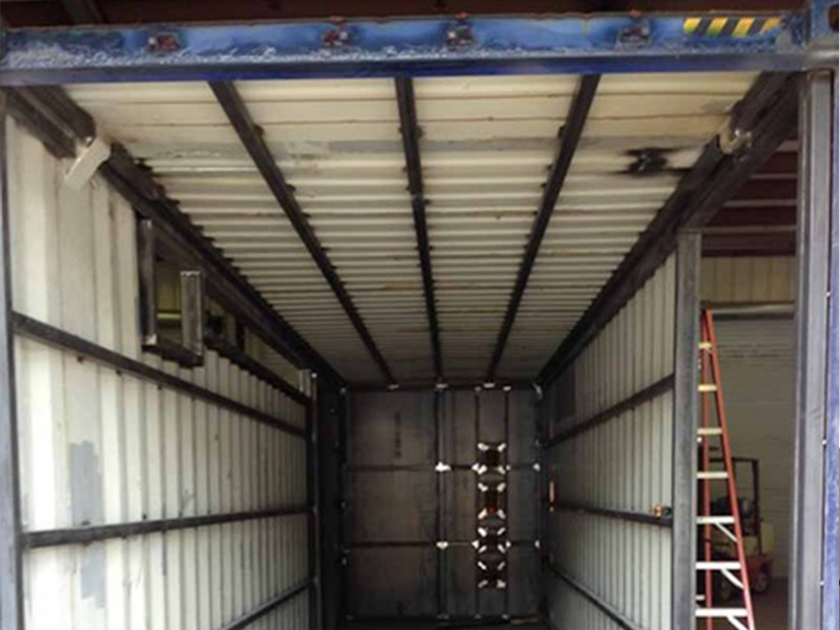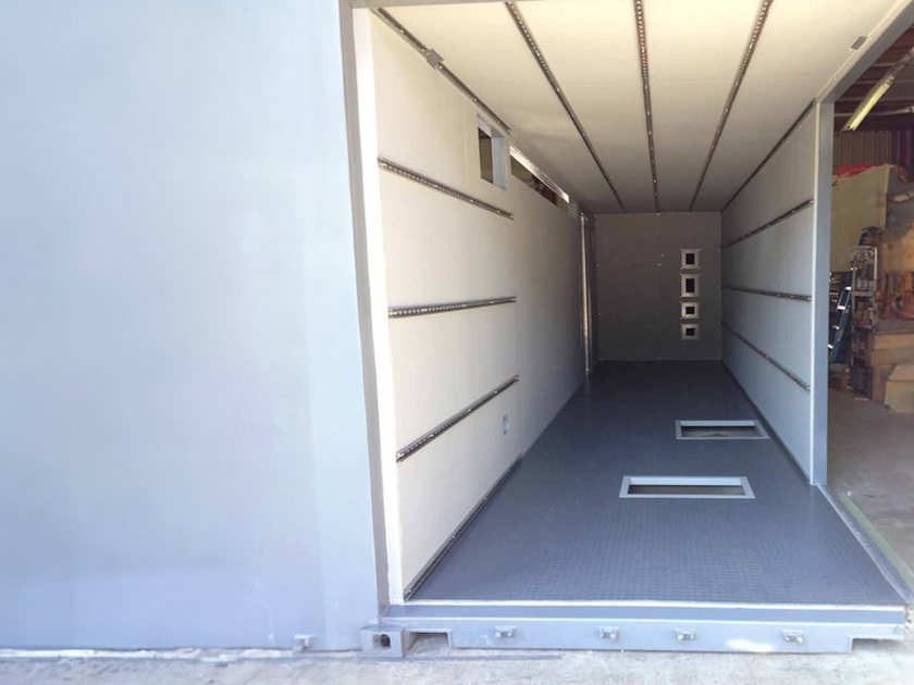 2” x 2” steel framing on walls, average 2” closed cell spray foam and .050” grey polypropylene panel overlay on ½” plywood as wall paneling