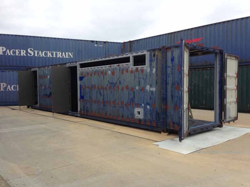 45ft High Cube container converted into an on-site waste recycling/processing unit.