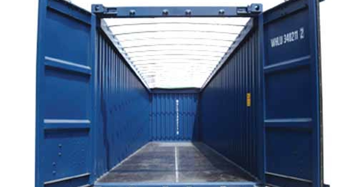 An open side container is equipped with two large bi-fold doors on the side wall.