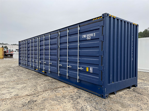 These units are equipped with standard double cargo doors on one end. However, they also feature one full-length side that can be opened entirely. This is an excellent advantage when loading with forklifts or using the container as a pop-up shop or workspace. They come in 20 ft and 40 ft lengths and are available in both standard (8′6″) and high cube (9′6″) heights. The opening side is typically configured with two bi-fold doors. These units are ideal for large-item access or display spaces.